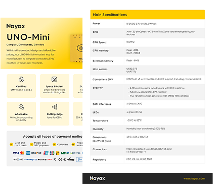 The UNO-Mini contactless payment terminal powers a range of verticals.